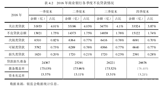 第一,我國商業銀行經過十幾年的繁榮發展走向成熟期,商業銀行盈利空間、競爭力也隨著金融行業的多樣化發展而受到了挑戰,僅僅依靠商業銀行的存貸利息差收入已經滿足不了銀行的利潤增長速率,把發展重點放在中間業務、互聯網金融等新興業務模式上;再加上商業銀行嚴格按照巴塞爾協議的資本監管要求控制信貸風險、自身不斷吸收優質資產保證貸款的可回收性,使銀行在信貸擴張的環境下保證了較低的不良貸款率。
