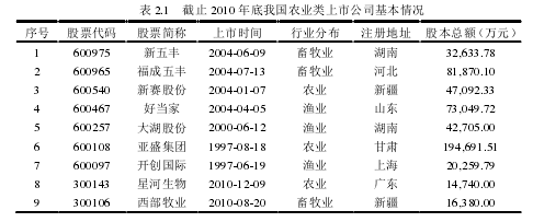 2   我國農業類上市公司的基本現狀