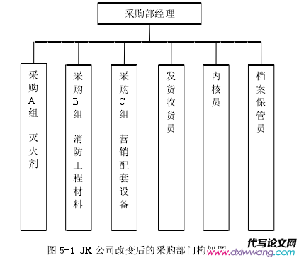 增加 3 名采購人員,增加人員后,采購員變為 9 人,分為 A、B、C、三組,各負責一類采購事務,分別負責滅火劑、消防工程材料、營銷配套設備的采購工作。新增設供應商檔案管理人員一名,主要負責供應商檔案的保管和采購合同的保管工作。增加采購部門人員,能在一定程度上緩解采購人員的工作壓力,提高采購人員的工作效率,改變后的采購部門架構見圖 5-1 所示:企業生產經營活動中的許多環節都需要人去完成,“人”是企業經營管理活動中的重要因素,直接影響企業的經營管理效率,因此企業應當重視對員工的培訓。企業在加強員工培訓時應注意以下幾點:(1)加強對采購人員的專業能力培訓;具體內容包括加強采購人員的專業知識培訓和對采購相關法律法規的學習,加強采購人員對市場的認識,使其具備對市場變化進行分析的能力,加強采購計劃編制方法的學習,提高采購計劃編制的準確性等內容。提高采購人員的專業技能和技術水平。(2)加強采購人員的道德培訓;通過培訓提高采購人員的法制觀念和職業道德,同時針對采購過程中有可能出現的各種狀況,建立不同的獎懲措施,或將采購人員的績效考核加入道德指標,如有嚴重違規者可將其調離采購崗位或者直接開除。爭取建立一支高標準、高要求、高素質的采購隊伍,從而提高整個采購部門的專業水平。