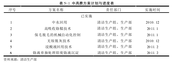 5.1 清潔生產方案實施