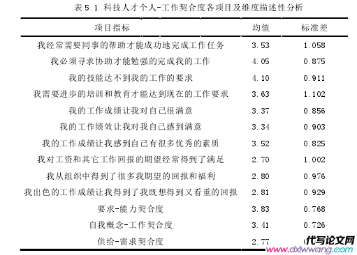 5.1.1 科技人才個人-工作契合度的描述性分析 ...........27