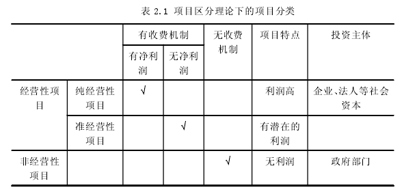 一般來說,根據項目本身有沒有收費機制,可以把項目分為經營性項目和非經營性項目,而根據項目有沒有凈利潤可以進一步把經營性項目分為純經營性項目和準經營性項目,如表 2.1 所示。從表 2.1 可以看出,所有的項目都可以分為三大類。第一類是不但具有收費機制而且具有凈利潤的純經營性項目,作為純經營性項目,本身具有較高的經濟效益,是各類投資者眼中的“香餑餑”,都愿意投資與此類項目,獲取利益。第二類項目類型是有收費機制但是沒有項目本身沒有凈利潤的準經營性項目,項目需要政府部門進行額外的財政補貼或者稅收優惠才能保證項目的正常運營,實現較低的利潤水平。第三種項目類型是非經營性項目,這種項目沒有收費機制,純粹是為公眾服務,為社會提供福利的,一般都是由政府部門進行投資。從項目的分類可以看出,準經營性項目具有公益性和一定的經濟性,一般需要私人部門和政府共同投資才能完成建設和運營。污水處理行業的 PPP 項目就屬于此類項目,項目本身的收費并不能獲得利潤,需要政府的額外補貼才能夠實現盈利。伯利、米恩斯在 20 世紀 30 年代倡導企業所有權和經營權相分離,提出委托代理理論,委托代理理論的本質是契約關系。舉個例子來說,委托代理理論就是A 和 B 之間通過契約建立合約關系,代理人是管理經驗豐富的 A,委托人是管理經驗不足的 B,委托人 B 為了使自己企業的利益達到的最大化,將企業委托給經驗豐富的的代理人 A 管理經營。A 依靠委托人 B 的授權進行經營活動,這種活動能夠給委托人 B 帶來利益,但是由于代理人 A 不具有企業的所有權,委托人會給予代理人一定的代價作為報酬,為了使報酬達到最大化,代理人 A 全心全意的為B 經營管理公司。代理人和委托人之間通過契約形成委托代理關系,它的目的是追求分工和規模效應。