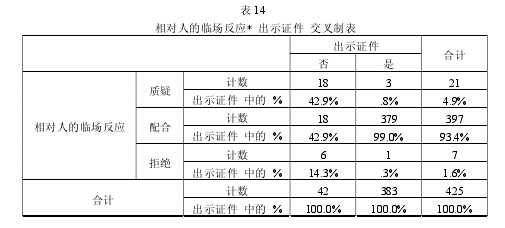 就理論層面而言,盡管學界對盤查屬性的探討沒有達成一致意見,但爭論的范圍不是漫無邊際的,而主要限定在行政行為說、刑事司法行為說以及中間行為說三種觀點之間。本文在對比分析以上三種學說的基礎上,認為盤查不是單純的行政行為或司法行為,而是一種介于行政行為與刑事司法行為的中間行為。至于盤查最終具有行政屬性還是刑事司法屬性,則要視盤查取得的證據在行政強制或行政拘留嫌疑人與刑事追訴嫌疑人中所起作用的大小。如果盤查中收集的證據對嫌疑人產生不利的行政法律后果,那么盤查屬于行政行為;如果這種證據對嫌疑人產生了刑事追訴的效果,那么盤查就是刑事司法行為??傊?,筆者希望前述認定盤查屬性的標準可以為以后有關盤查的研究提供一定的借鑒。對盤查實務而言,本文采用問卷調查法、訪談法、實地觀察法就 S 省 N 市警察盤查實務展開調研,從多角度來研究警察盤查的現狀,分析、總結盤查實務中的經驗與教訓,以保障民警規范、理性、文明、平和地盤查,降低非法或不當盤查現象的發生,提升社會民眾對盤查制度的了解與信任,主動、積極地配合盤查執法,從而更好地維護國家安全、社會秩序以及公民人身、財產安全。誠然,盡管調查報告最多僅能反映 S 省 N 市的盤查基本情況,但對提升我國其他地區警察盤查的合法、文明水平仍具有一定的借鑒意義。