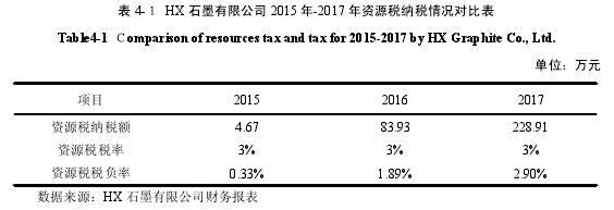(3)通過對 HX 石墨有限公司的資源稅、環境保護稅、增值稅、企業所得稅等稅種展開納稅籌劃設計,對主體稅種進行詳細分析,減少主體稅種的應納稅額,可以有效降低稅負。