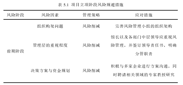 5.1 項目立項階段風險應對措施