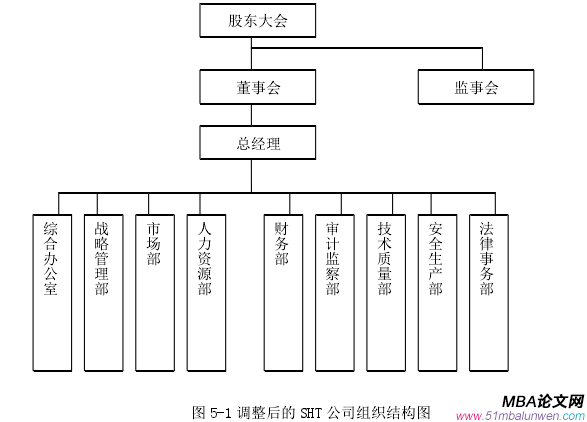 SHT 公司新建成的戰略管理部門,可以由中層或者高層管理人員擔任新部門的負責人,根據新興部門的職責,設立不同的部門崗位,如總體戰略控制員、業務流程分析師、信息篩選員等。在當前 SHT 公司日常經營中,為了有效避免多元化戰略在公司日常管理細節制定上戰略的隨意性與不嚴謹性以及對公司戰略政策的實施主要依靠高層管理者的主觀判斷與喜好而并未對公司內外部具體情形進行調查研究就決定多元化戰略如何實行的問題以及公司戰略的制定并未做到動員群眾力量,廣泛聽取公司不同部門職員的意見,使得高層管理者制定的決策在企業職員中嚴重缺乏認同感而使得各個職能部門各自為政,管理混亂的問題。綜合上述問題,公司實行多元化戰略的重要前提就是強化多元化戰略執行力度。對于 SHT 公司具體的組織結構調整優化如下圖所示,具體如下;