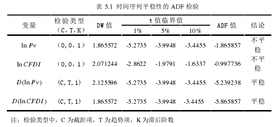 5.1 服務業 FDI 與我國服務業結構優化的因果關系檢驗