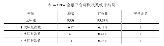 本文主要研究借款人的信用風險識別,由于不同平臺之間經營業務不一樣,借款人的風險承受能力略有差異,對借款人的借款資質要求不同,因此對于借款人的信用風險識別應結合具體平臺的業務進行具體分析。本文選取一家以信用借款為核心業務的 P2P網絡借貸平臺——NW 金融,具有無抵押純信用金額小的特點,針對平臺借款人信用風險進行分析,希望對我國 P2P 網絡借貸行業特別是信用借款的風險識別具有一定的參考意義。第一、NW 金融是完全透明的信息中介平臺,標的詳情真實,筆筆可查。NW 金融平臺是 2014 年上線成立的,并于 2016 年 10 月份上線了產品--極速借。依據公司大數據智能風控分析系統,向借款人推出了額度在 500-5000 元,借款期限在 1-6個月,無抵押純信用的借款產品。借款人填寫完畢申請資料之后,由 NW 金融的風控系統自動審核,輸出關鍵點再由人工復核,人工驗證無誤將審核通過的借款申請發布出去由出借人提供出借資金。當出借人對借款人的標的滿標之后,借款人即可提取借款。整個過程,完全線上操作,節省了借款人大量的時間與精力。在投資界面,出借人可以完全看到借款人的信用信息,包括個人信息,財務信息,歷史借貸記錄等,結合 NW 金融平臺推出的平臺信用評分,出借人能夠對借款人的借款風險能有一個具體的認識。整個標的信息的披露完全公開透明,出借人可以非常清楚地了解借款人與借款用途。在撮合出借人與借款人過程中,通過法律手段,簽訂一對一電子借款合同,保障了借款人與出借人雙方的權益,達到了共盈的目的。NW 金融網絡借貸平臺信息透明,既是 P2P 網絡借貸平臺發展的趨勢,也能為行業的健康發展提供有利的參考樣本。