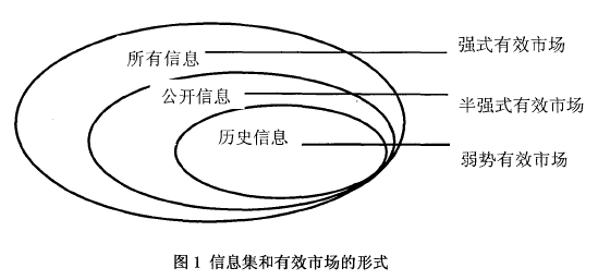 尤金.法瑪根據證券價格與不同時間維度的信息之間的關系,將有效市場分為以下三類:強勢有效市場、半強式有效市場和弱勢有效市場(見圖1)。