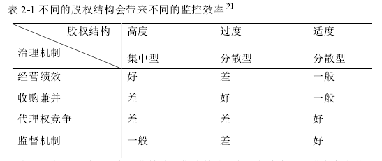 Grossman 和 Hart(1982)利用相關模型證明了,在分散類型的股權結構下,由于單個股東監督公司經營管理所能獲得的收益小于成本,因此他們普遍缺乏治理公司,促進其價值增長的積極性。