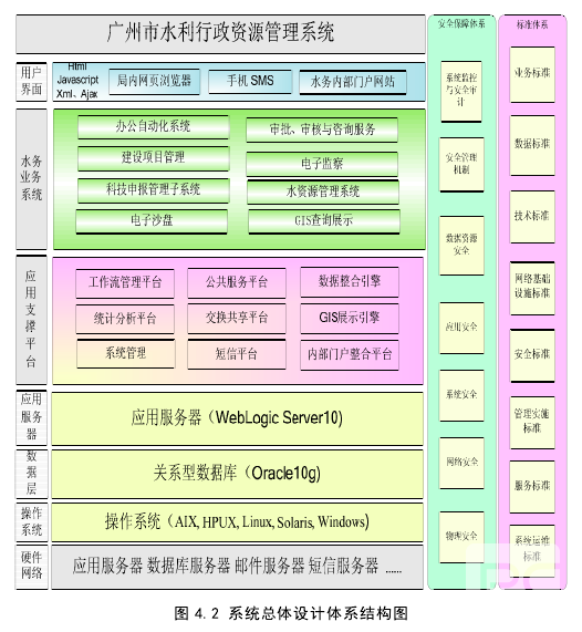依據廣州市和水務局的十二五規劃,以及對相應信息化的要求,下面就廣州市水務資源管理系統總體結構、應用部署結構、應用設計、數據庫設計和技術架構等方面講述系統的總體設計方案。