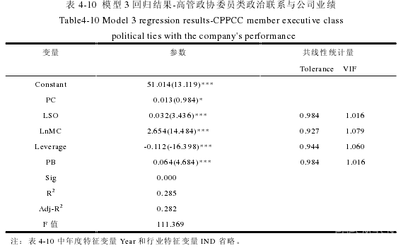 4.4  高管政治聯系對民營上市公司業績影響的實證檢驗.... 22