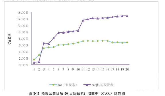 定向增發市場反應分析定向增發宣告前后上市公司股價的反應,包括短期市場反應和長期市場反應。國外現有文獻對定向增發市場反應的主要研究結論是:定向增發與其他股權再融資方式相反,具有短期正的市場反應(宣告效應)。另外,具有不同背景的資本市場,對定向增發的市場反應與解釋有所不同。 從對國內外現有文獻的梳理結果來看,上市公司定向增發具有顯著積極、正面的市場反應。國外對非公開發行的問題研究很早,積累了大量關于市場反應的研究成果,來自多個國家的研究結論已支持上述觀點。如:Wruck(1989),Kato and Schallheim(1993)分別發現在美國、日本上市公司定向增發事件前后,市場的短期效應顯著為正;國內學者對市場反應的研究集中于事件日后的“公告效應”,所選擇的事件區間,計算方法不同,結論略有差別。陳陽(2007)、章衛東(2007, 2008)、徐福壽(2010)等學者的實證研究均表明,上市公司定向增發后呈現顯著的正向的市場反應。章衛東(2007)對上市公司的增發后短期宣告效應進行實證研究,發現了增發公告后顯著正的市場反應;次年,對增發折扣率與增發后的股價關系進行實證研究,以定向增發公告前后 35 天作為事件窗口,計算超額累計收益率,發現低折價率定向發行新股,公告效應越大;王翠和賀柳(2009)用預案公告后(0,15)天的 CAR 作為宣告效應變量比較研究定向增發和普通增發的區別,發現定向增發在(-1,1)區間內存在顯著的正超額累積收益率;徐福壽(2010)用預案公告日作為事件日,發現預案公告前的超額累計收益率大于公告后超額累計收益率。