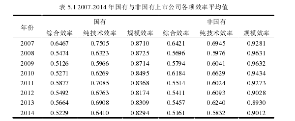 5.1 基于所有權類別的上市公司經營效率比較